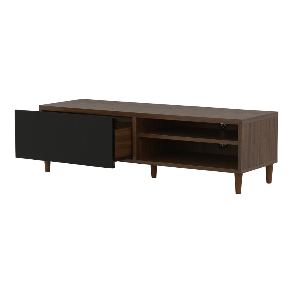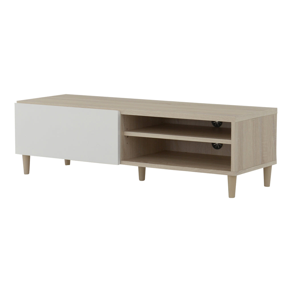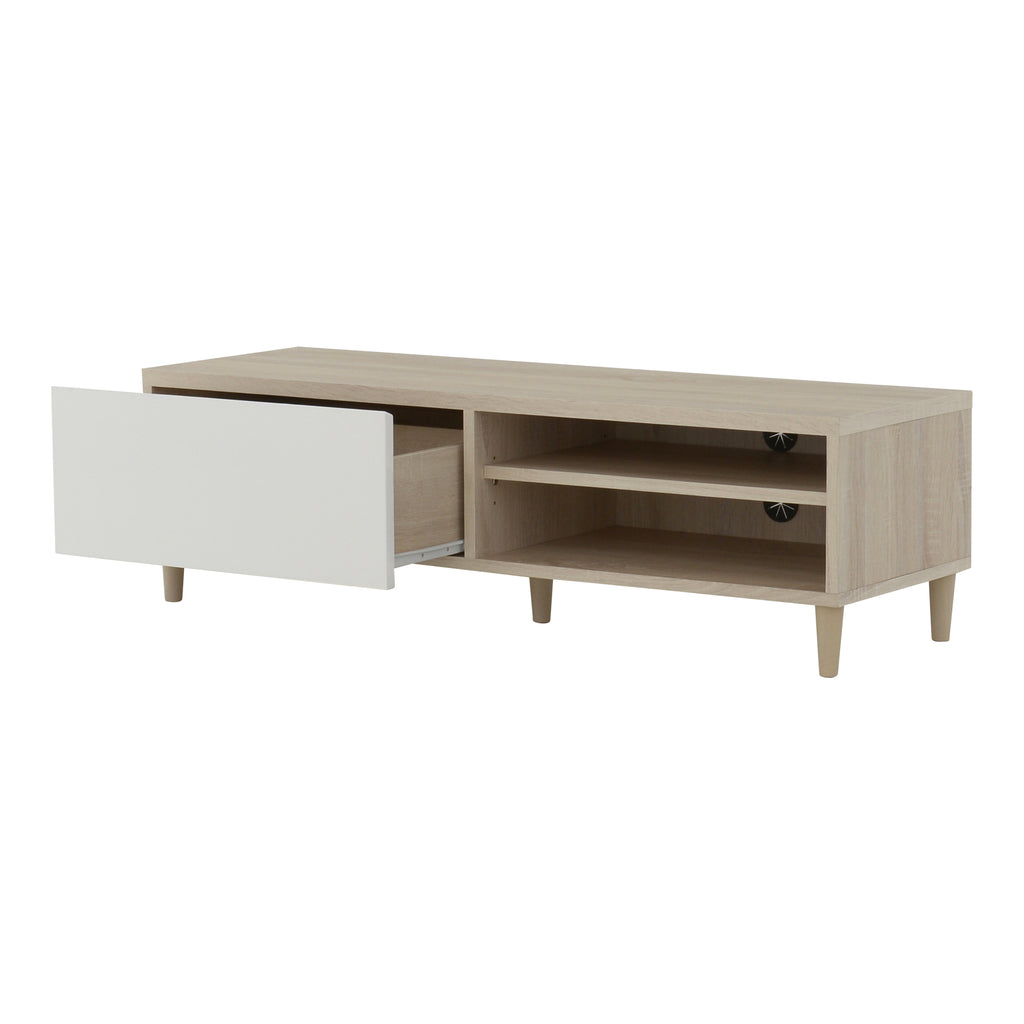 幅120cmで最大37インチのテレビが置ける、鏡面と木目を活かした落ち着いたナチュラル感が印象的な北欧テイストあふれる、テレビボードが登場。