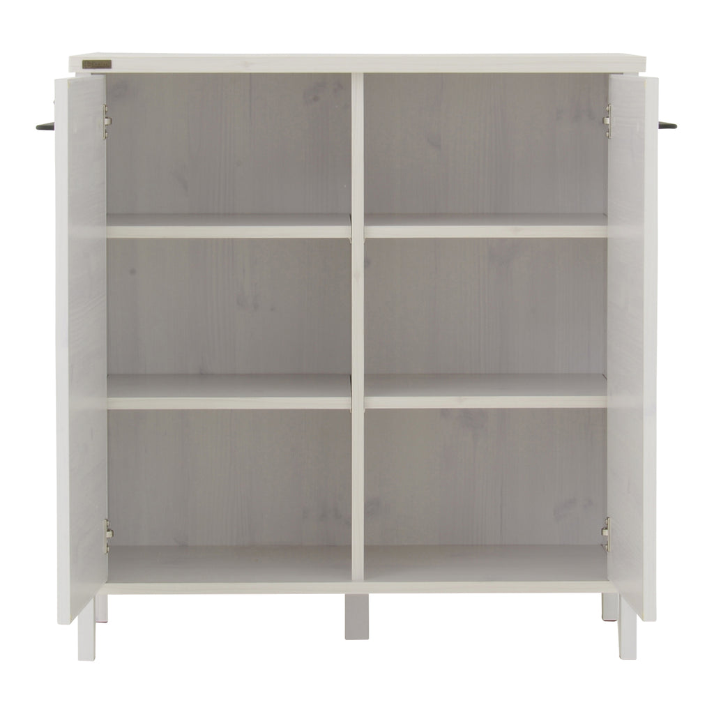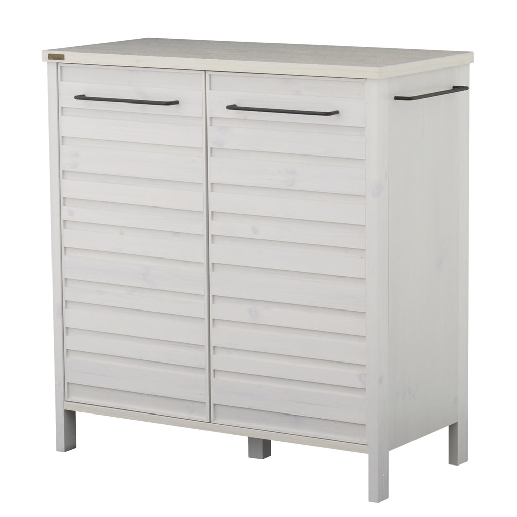 しっかりとした大きさで、食器やストック品などたくさん収納できる扉付きキッチンボード。デザイン性のある前板扉がおしゃれでGood。高さ10cmの脚下空間が、圧迫感なく、掃除も楽々。ホワイトインテリアや北欧インテリア、ナチュラルテイストがお好きな方におすすめ。