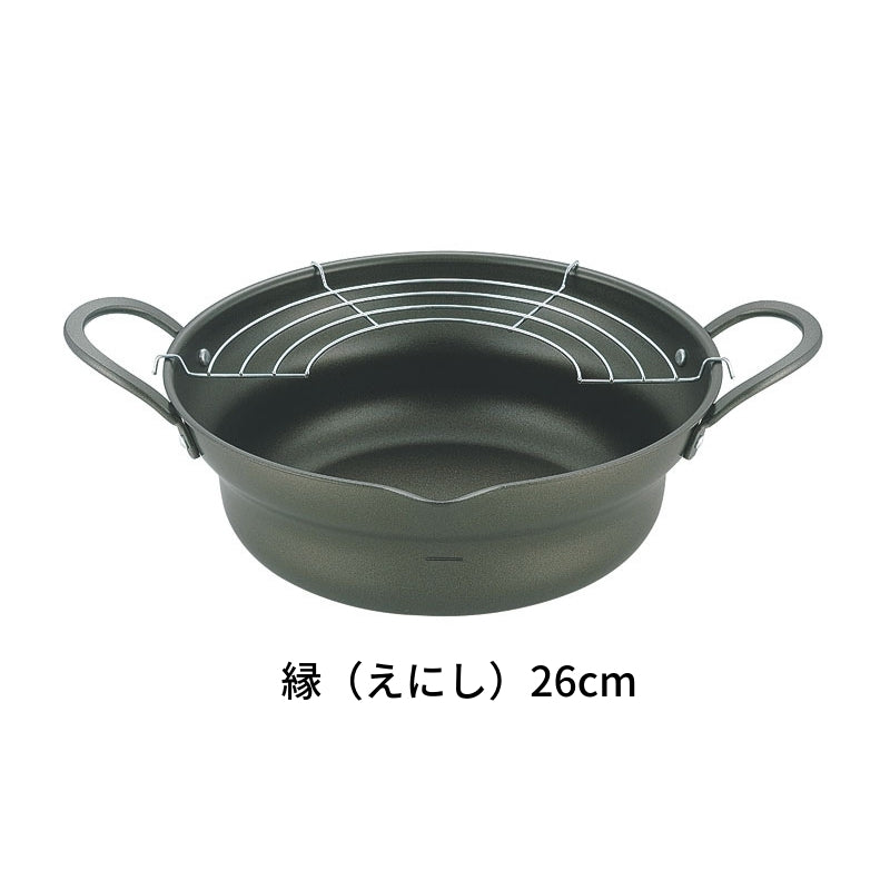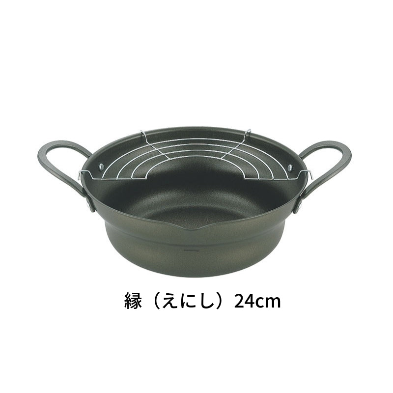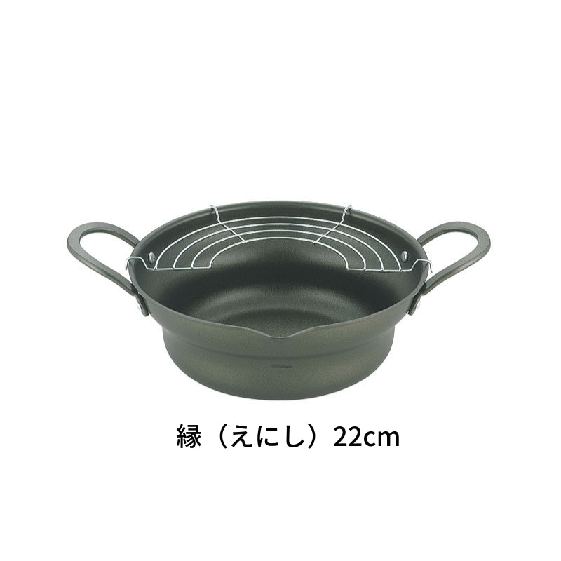 縁 (えにし)広口揚げ鍋アミ付き 日本製天ぷら鍋