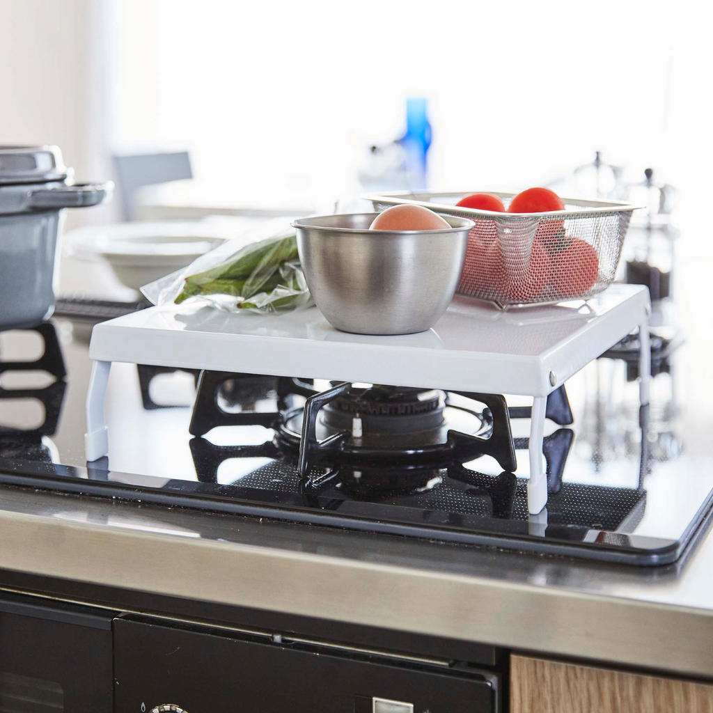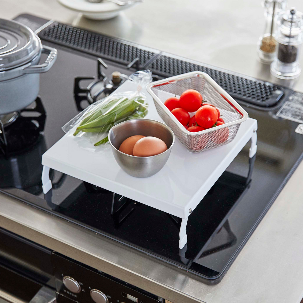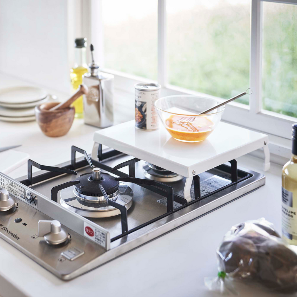 使用していないガスコンロの上が収納&作業スペースに早変わり!