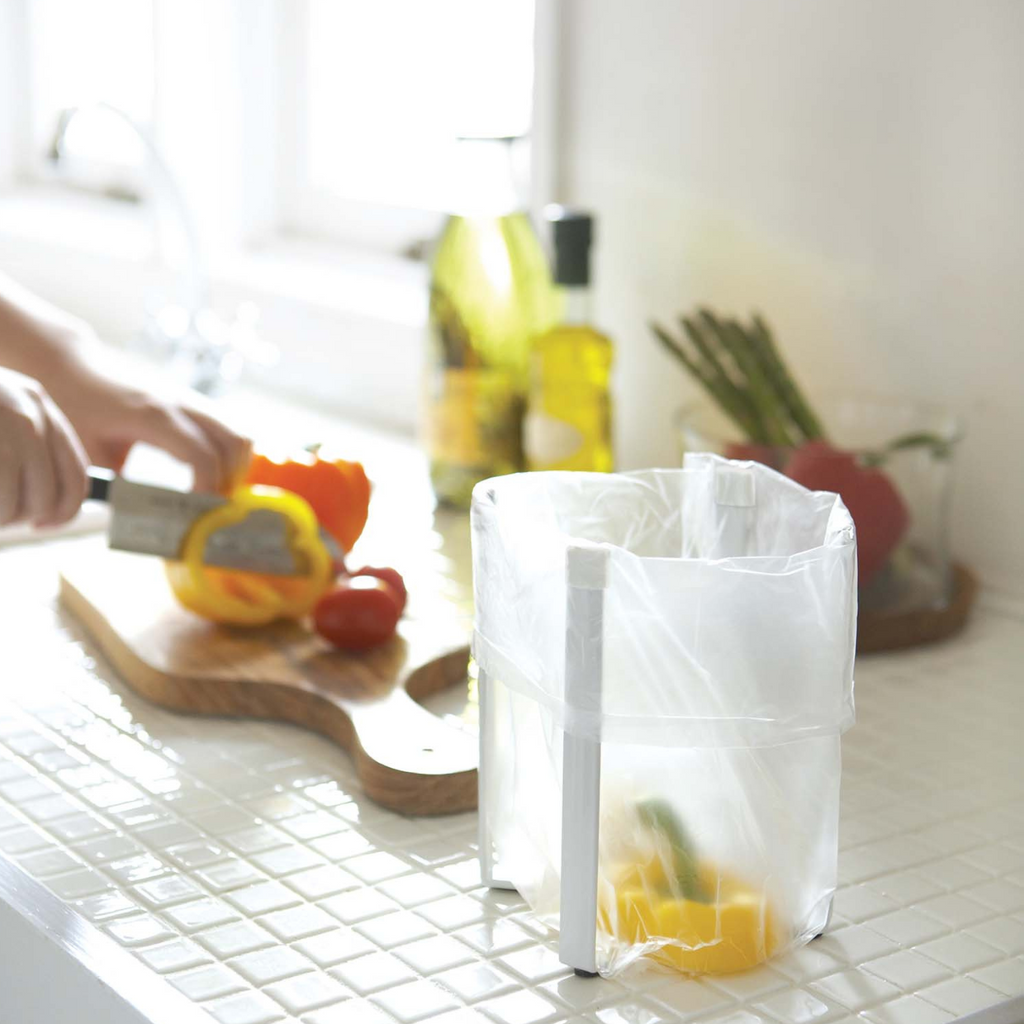 ポリ袋を掛けて調理中に出るゴミ入れとして使用するなど、