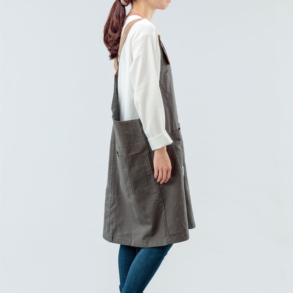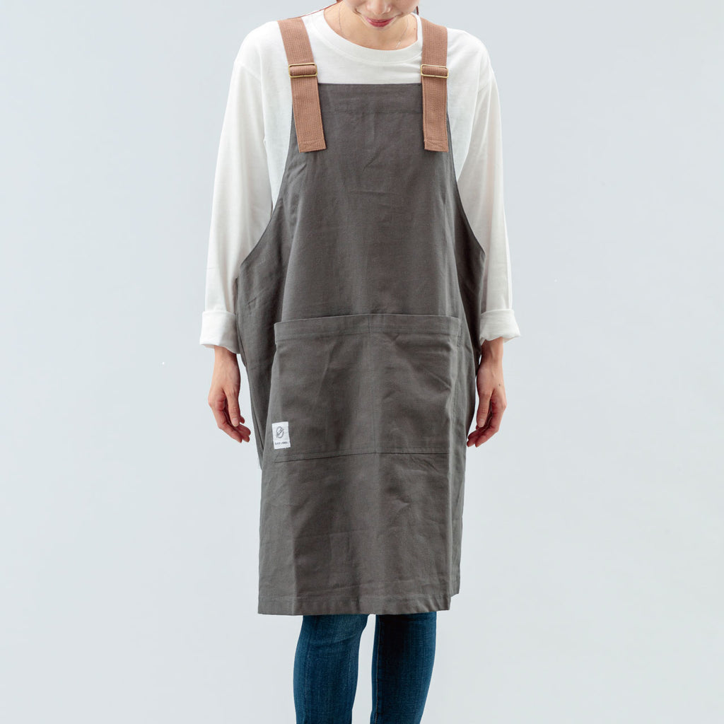 カバーオールエプロンはユニセックスに使えるフリーサイズ。肩のベルトで長さ調整が可能です。