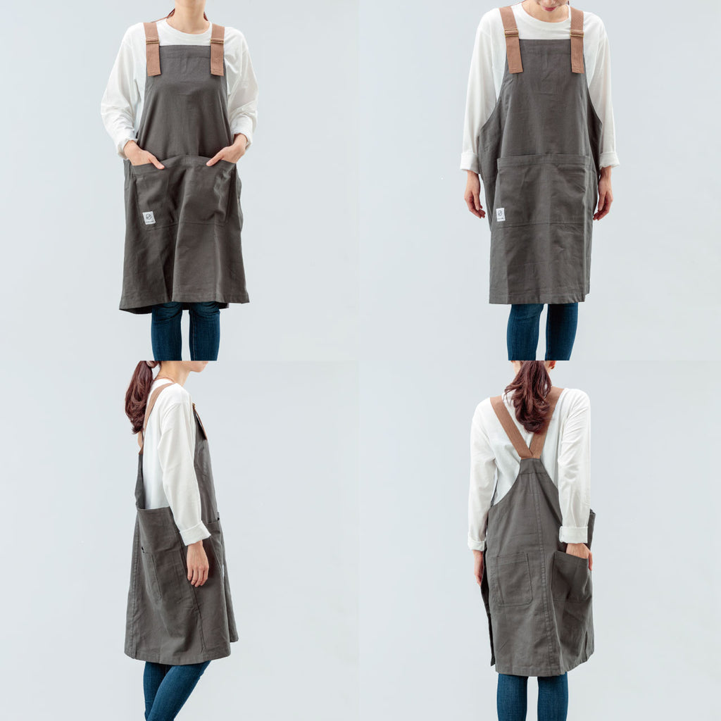 使うシーンやシーズンを選ばないユニセックスなフリーサイズエプロン【グレー】